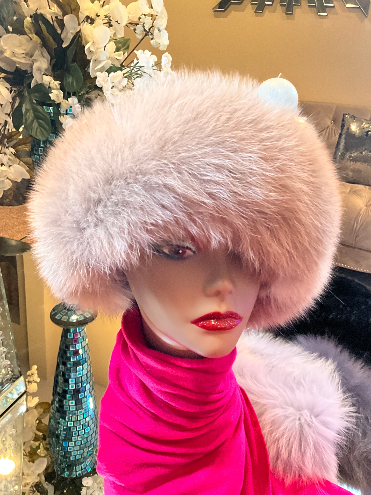 Beautiful Custom Brown Mink Hat on top with Brown Fox Fur Trim