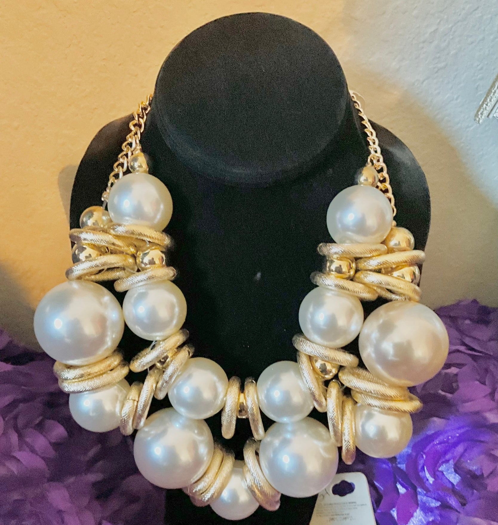 If you love to make a statement, this is definitely the necklace for you necklace does have weight on it due to the chunky pearls and the hardware of the necklace.