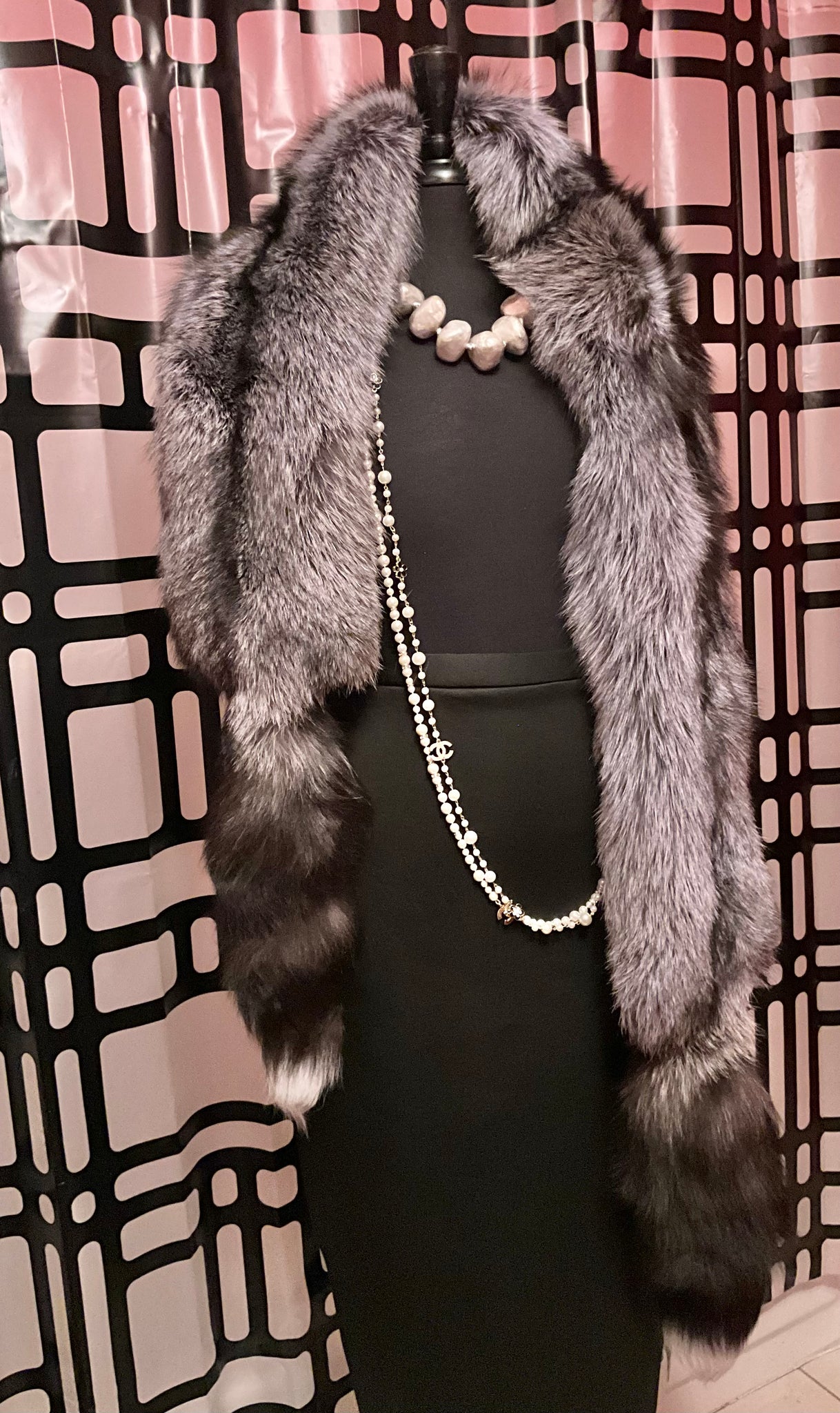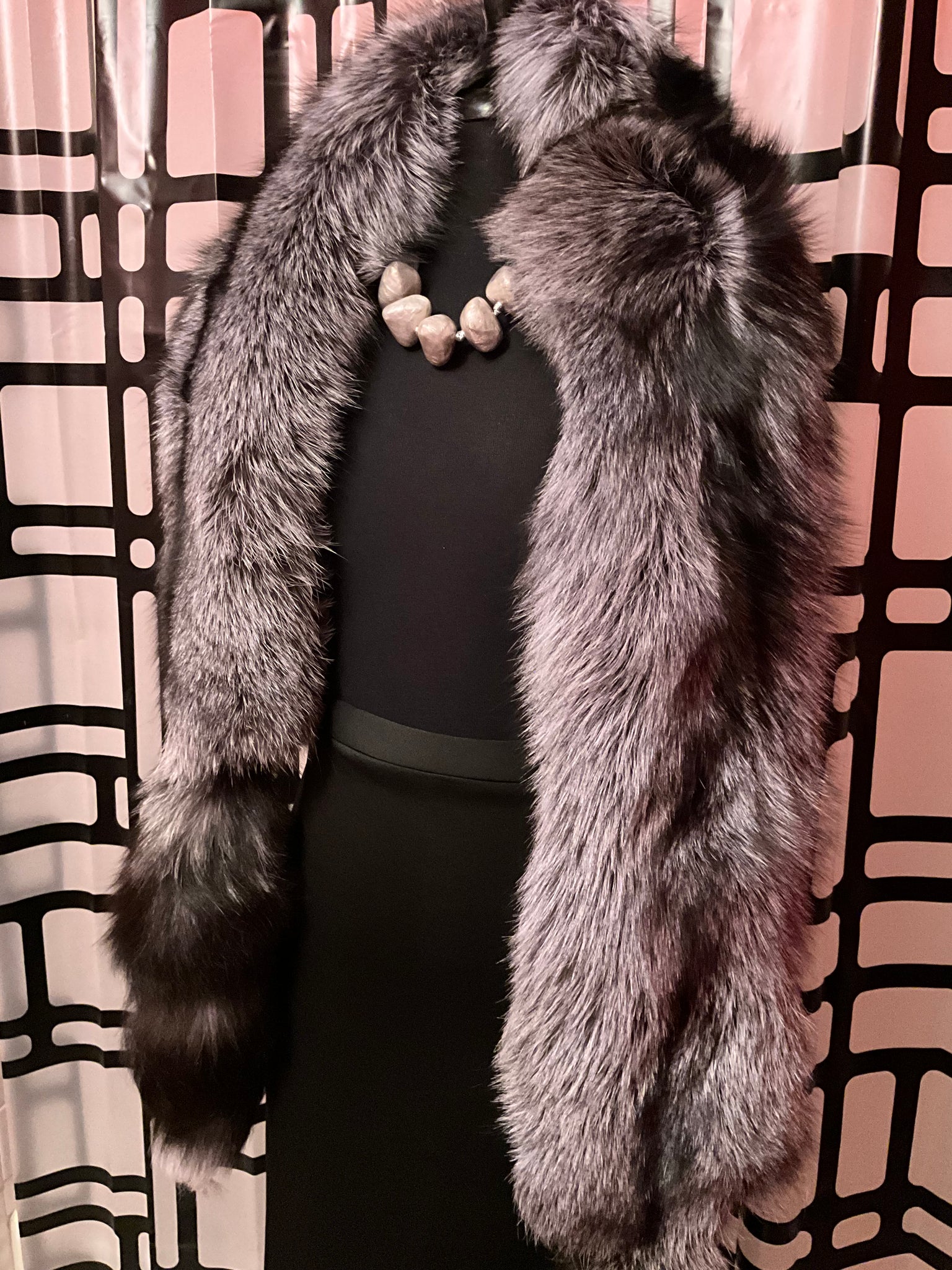 This beauty is a mix of black and white fox fur absolutely beautiful on.